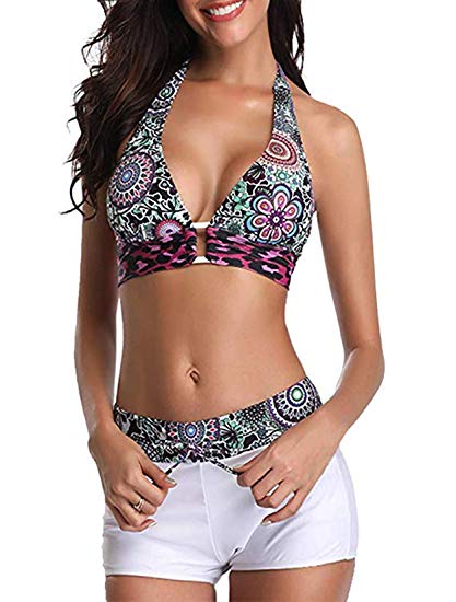 - Two Piece Swimwear Tankini,Features Deep Cut Sides and Built-in Sports Bra with Adjustable Straps.Symmetrical cashew Flower Printed Retro Paisley Printed Tankini Set