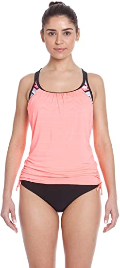 2-in-1 Sporty womens bathing suits two piece with built in Sport Bra including soft cups and double adjustable fit straps, over a comfortable basic brief bikini bottoms with full coverage fit, all for superior comfort during activity.