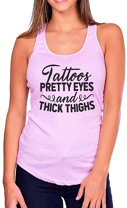 “Tattoos, Pretty Eyes And Thick Thighs” * Our Funny Threadz Basic tanks are super soft, light weight and comfortable as ever. Order a size up for a nice comfortable fit. Products ship within 24 hours and should arrive to you within 2-4 days. We make each and every shirt here in the US. Each shirt is made on the spot, for yourself so please make sure your picking the correct size.