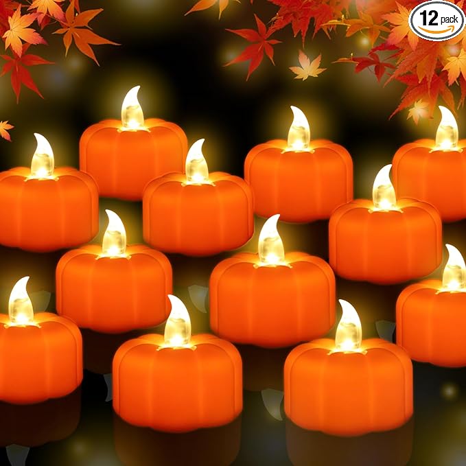- Ideal Halloween Decoration: These realistic flickering pumpkin tealights are suitable for fall, Halloween, Thanksgiving, theme parties, birthday, and holiday decorations. Great for decorating indoor, outdoor, at home, parties, wishing stands, tea light stands, fireplaces, dining tables, tabletop, room, bedroom, living room, dining room, kitchens, bathroom, windows, doorways, gardens, patios, wedding, bar, pumpkin lanterns, centerpieces, etc