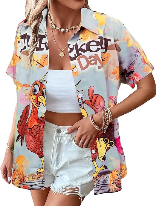 - Womens Turkey Day Shirt:Women Turkey day t shirt, thanksgiving casual fall tops, turkey graphic printed tops, grateful shirt, fall multicolor shirt with “gobble gobble”printed.