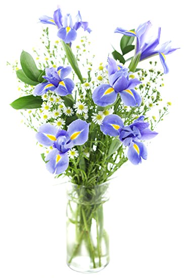 With its sweet fragrance and ruffled assortment of blooms, this bouquet is evocative of a rustic English countryside. This assortment of deep blue irises tossed between Soldiagos and dainty Asters carries with it the essence of rural England- old historic towns with cobbled streets, rolling greens speckled with wildflowers, mighty oaks and old, secret pathways.