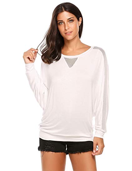 - -A well-made round neckline, batwing long sleeve, mesh patchwork blouse/ black, white, wine red 3 colors, S-XL 4 size, you can choose.