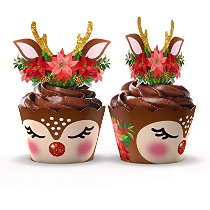 Our custom design is this seasons must-have for Christmas baking. We wanted to incorporate this years hottest trends from the deer cake squishy, to the unicorn eyelashes to (obviously) Santa’s favorite Reindeer, to bring you THE ULTIMATE kids christmas cupcake design!