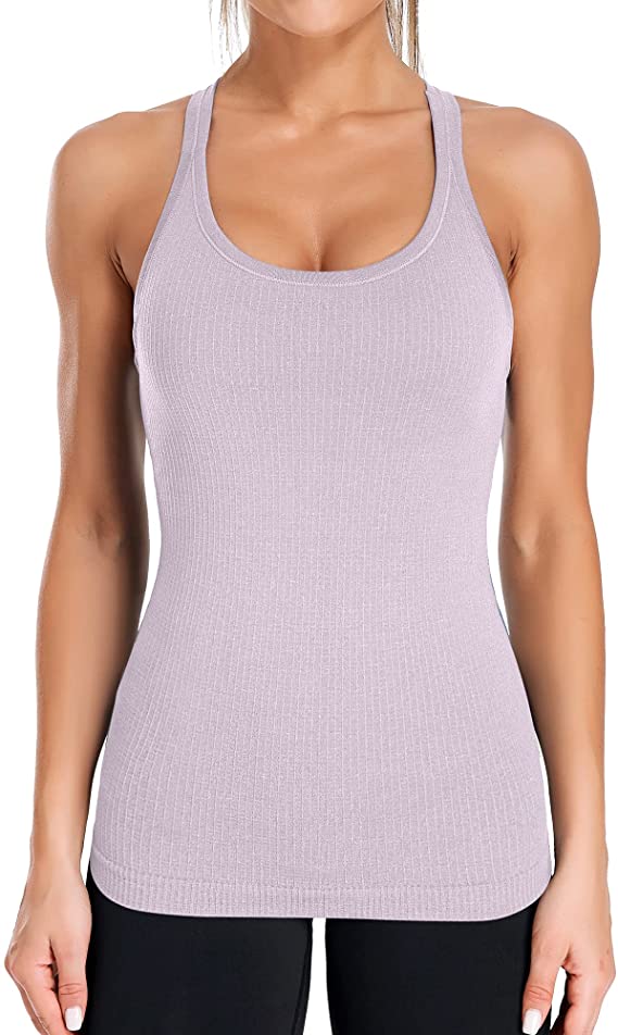 ATTRACO Ribbed Workout Tank Tops for Women with Built in Bra Tight Racerback Scoop Neck Athletic Top