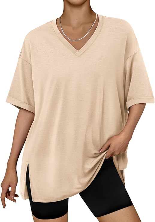 - Design: Oversized tshirts for women, with loose fit design, v-neck, short sleeve, simple solid color style, with drop shoulder sleeves, fashionable and classic, casual style, suitable for spring and summer.
