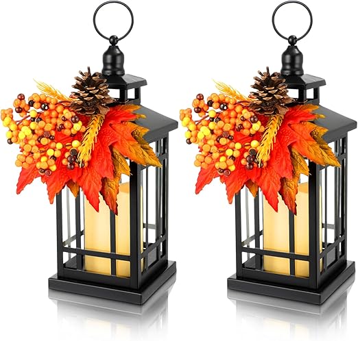- Battery Powered: each Thanksgiving lighted metal lanterns comes with 1 LED artificial plastic candle, powered by 3 AAA batteries (batteries not included), and easy to use on/off function, providing flickering light effects, warm and comfortable, just like a real flame, turn on the LED candle to create a fall atmosphere of thanksgiving and harvest, and bring warmth and good wishes to family and friends