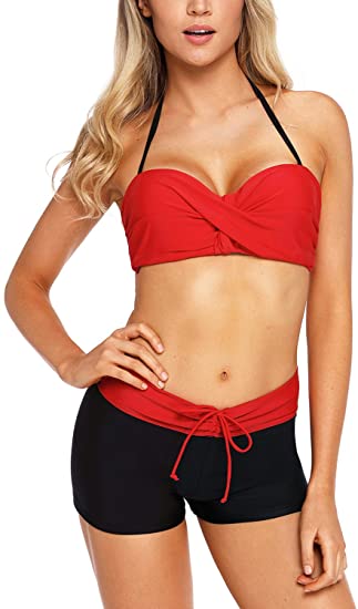The Padded Gather Push-up Bikini Set is the perfect solution. Contrast padded top and front waist of the bottom, shoulder straps and bottom back stay the same. The bralette top reveals your cleavage with its dramatic plunging halter neckline, steel wire and the padding is undetectable.