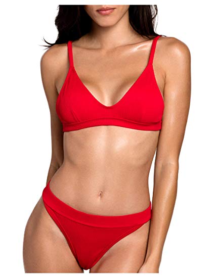 Featuring gold hardware accents and mesh lining throughout, this curve-hugging bikini is made with a very premium ribbed material that flaunts and flatters in all the right places. The bikini top is a fantastic cut giving you just the right amount of cleavage and the bottoms are modestly cheeky.