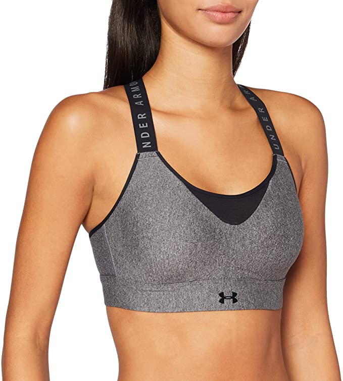 Delivers strategic support, tailored for high-support activities like running, court sports, field sports & aerobics. Molded, PU injected one-piece padding for ultimate comfort & added coverage. Mesh panels for added breathability. Smooth, sweat-wicking band has easy hook & eye closure for easy on & off. Adjustable straps with wordmark detail for a custom fit.