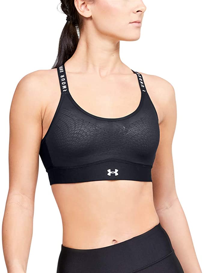 Best for A to C cups. Delivers strategic support, tailored for medium-support activities like cycling, weight training & boxing. Molded, PU injected one-piece padding for ultimate comfort & added coverage. Mesh panels for added breathability. Smooth, sweat-wicking band has easy hook & eye closure for easy on & off. Adjustable straps with wordmark detail for a custom fit. U-shaped open back design. Material wicks sweat & dries really fast