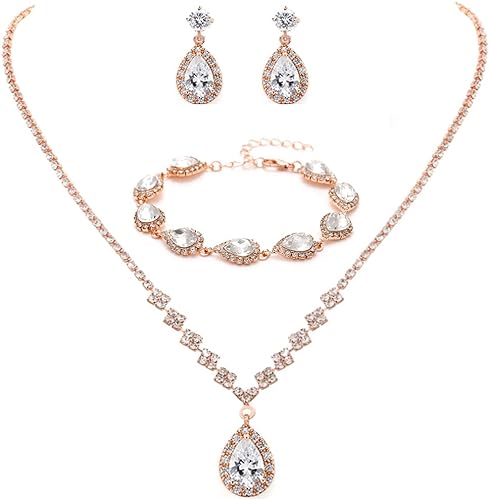 Crystal jewelry set includes a necklace, a pair of earring and a bracelet.