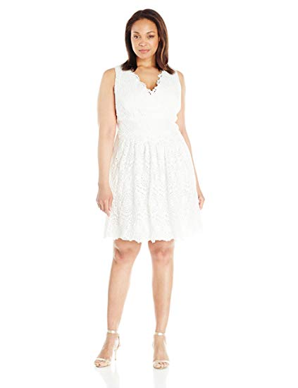 Adrianna Papell Women’s Plus-Size V-Neck Sleeveless Fit-and-Flare Lace Dress
