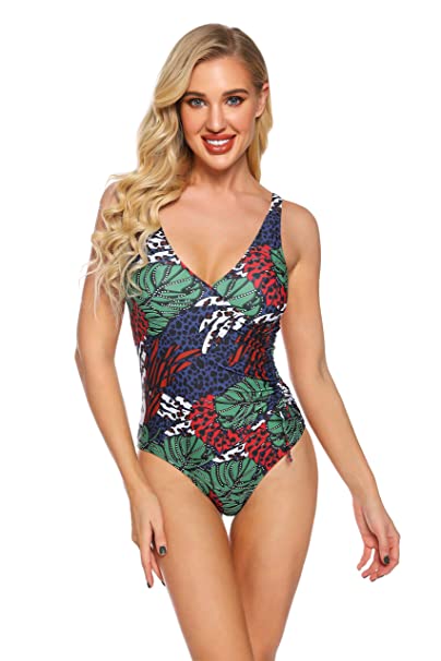 - Moderate leg cut, Adjustable Shoulder Straps, Ruched Tummy Control Pattern