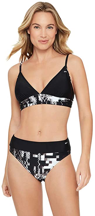 Get maximum enjoyment out of this very sexy ultimately sporty swim top from Reebok. A plunging V-neckline highlights your best features, while soft cups offer subtle shaping. Spaghetti straps have a delicate appearance yet they’re supportive, too. The signature Silver Lining fabric has natural antimicrobial properties plus chlorine resistant fibers for a long-lasting fit. The cut here is so flattering, with tummy control you’ll appreciate for days at the beach. Don’t be surprised when this becomes a new favorite.