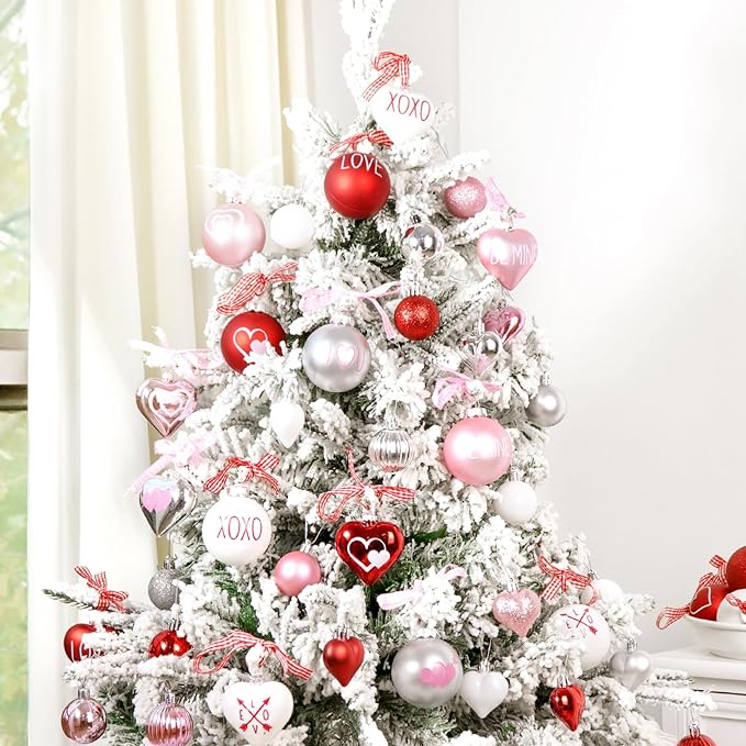 - SUPER VALUE SET: The beautiful Valentines tree decorations set comes with 48 pcs plastic heart and ball shaped ornaments. 16 pcs large ornaments size about 2.5 inches and the other 32 pcs size 1.5 inches. Valuable Valentines Day decor. Add a touch of romance to your Valentine’s Day celebrations.