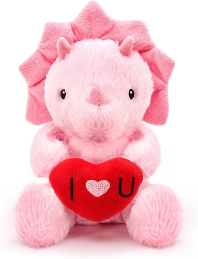 - Unique Design Pink Dinosaur Stuffed Animal: Soft Triceratops plushie comes in pink tones with a modern heart shaped style design to bring you more warmth, happiness and love