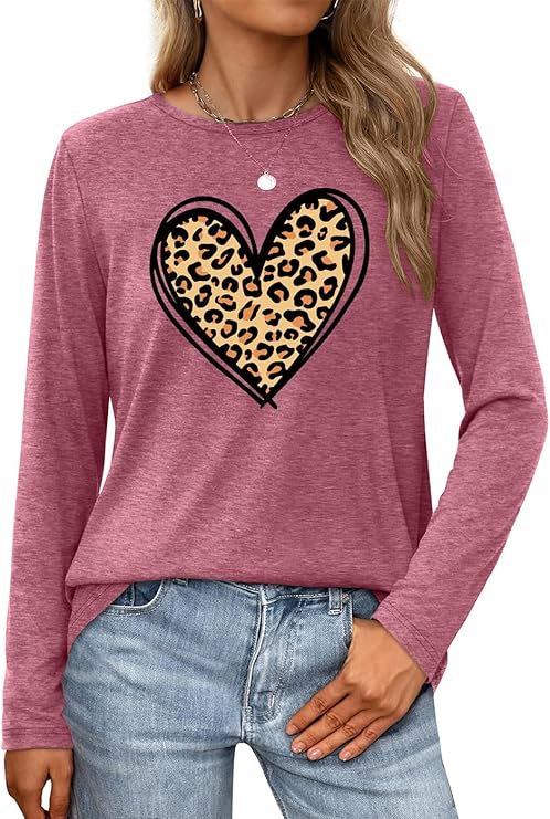 - Features: Valentines day outfit women, valentines day tops for women use cute leopard print heart and love hidden in the alphabet graphic design, combined with long sleeve, classic round neck, casual style, relaxed fit