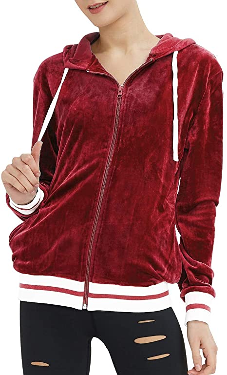 Velvet Running Jackets for Women Full Zip Workout Sweatshirts Hoodie with Side Pockets