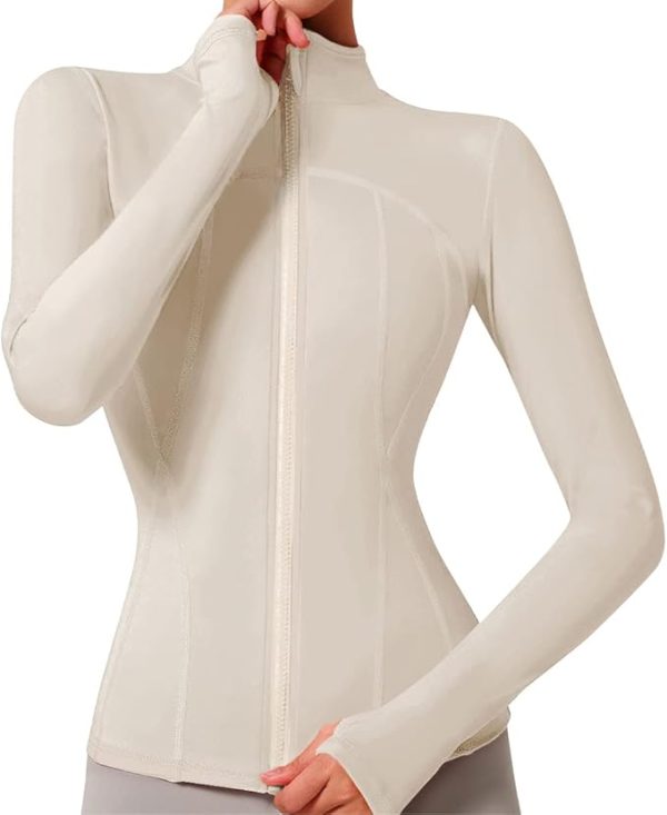 - Full Zip Up: unique line design,is great for taking on or off.making this workout shirt jacket athletic, attractive.Long sleeve cropped jacket is slim fit,solid color,moisture wicking, breathable, stretchy, and durable