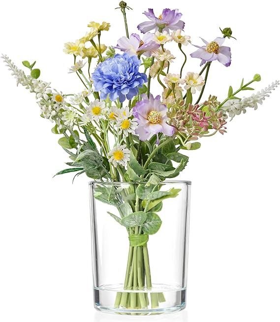 - 【 High-Quality Vase 】 The clear glass vase is crafted with thick glass and a stable bottom to ensure durability, and the acrylic faux water can firmly combine the faux fake flowers and the clear glass vase. Flower stems fixed in fake water in sturdy vase.