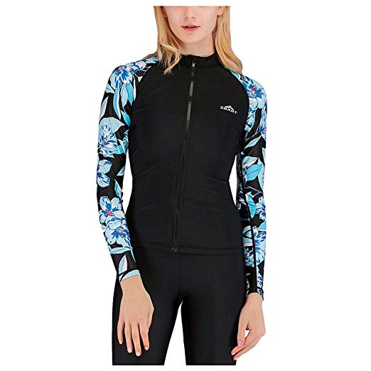 Women’s Wetsuit Top Neoprene Wetsuit Jacket Long Sleeve Front Zip Wetsuit Shirt for Diving Snorkeling Surfing