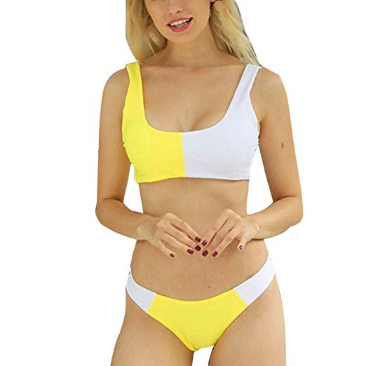 Mikilon Women’s Wide Strap Bandeau Solid Color Block High Cut Bikini Set Two Piece Swimsuit