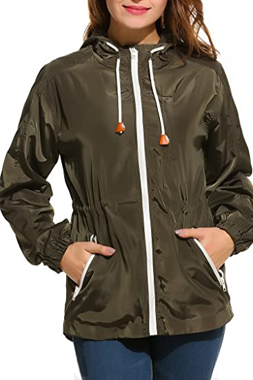 Zeagoo Womens Light Weight Outdoor Windbreaker Hooded Sports Outwear Full-Zip Jacket with Waist Drawstring