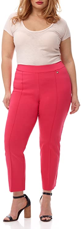 Wow! This pant has an easy fit and cropped ankle length for the perfect silhouette. Front pintuck detail and Rekucci logo details elevate the pant from basic to must have wardrobe staple. Hidden elastic inside the waistband for a secure and comfortable fit. Added light front tummy tamer panel offers a hint of control without being restrictive.