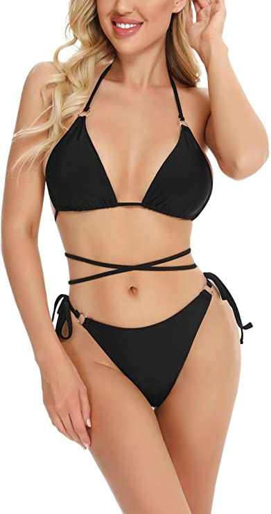 LOLLO VITA Women 2 Piece Halter Swimwear Ring Linked Sexy Swimsuit String Triangle Bikini Sets S-XL