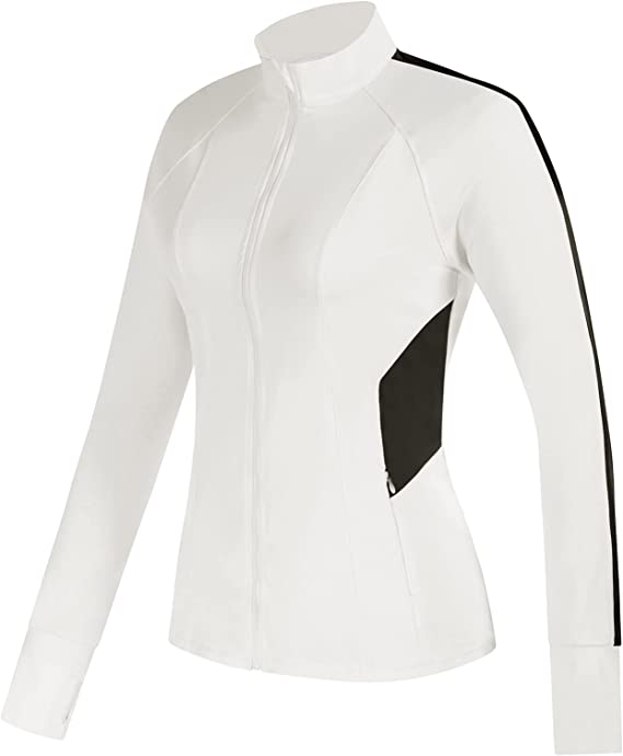 Workout Jackets for Women: Designed with high neck, deep zipped pockets and full-length zip, this full zip workout jacket is so flattering and versatile for all types of weather. Made out of a surprisingly comfy and breathable fabric, this 4-way stretch athletic jacket has a cottony-soft hand feel and sweats off your skin that you won’t feel chilly once you start breaking a sweat, while leaving no sweat stains.