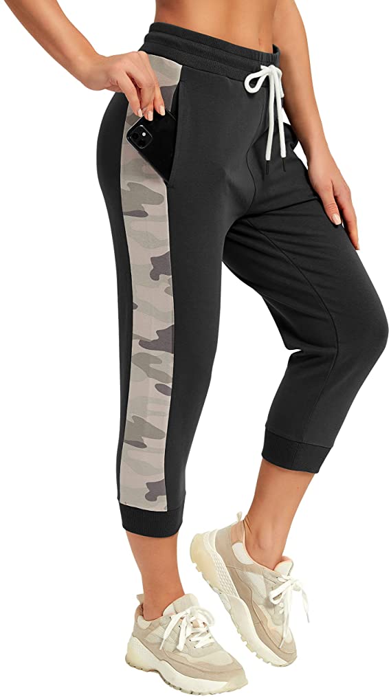 SPECIALMAGIC Capri Sweatpants for Women Comfy Camo Cropped Jogger Pants with Pockets Running