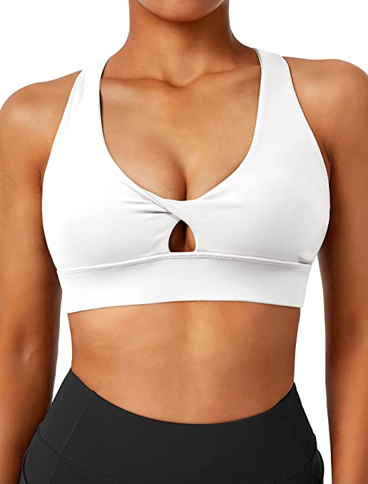 OMKAGI Women Criss Cross Padded Sports Bras Medium Impact Racerback Crop Tank Tops