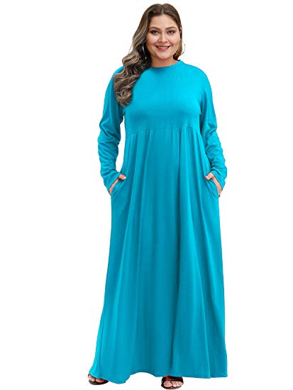 This women dress features side-seam pockets and a elastic waist, floor length. It fits for any season, you can wear it in spring, summer, fall, winter, simple but fashion style dress.