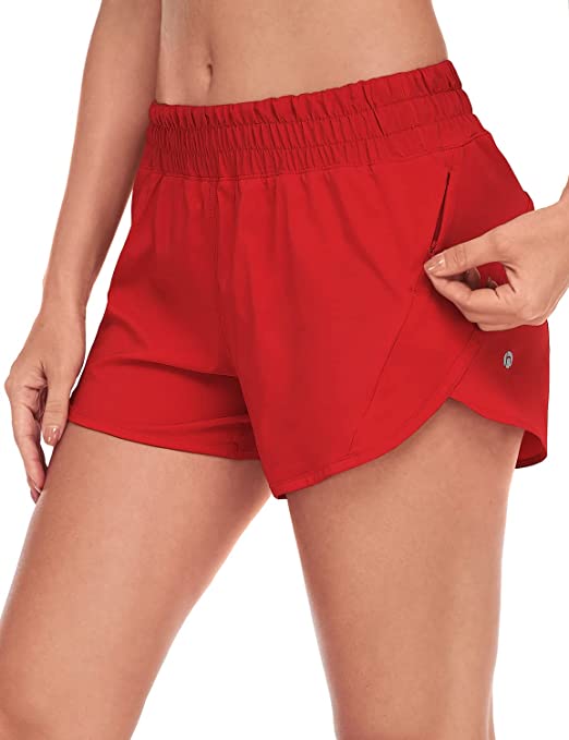 HeyNuts Stride Running Shorts for Women, Mid Waisted Athletic Shorts with Side Pocket Workout Shorts with Liner 4”