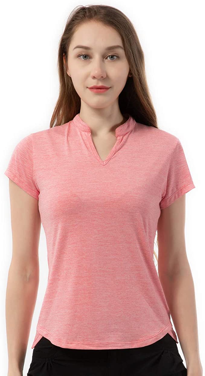 BELE ROY Tennis Shirts for Women Short Sleeves, Solid Golf T Shirts V-Neck Running Shirts