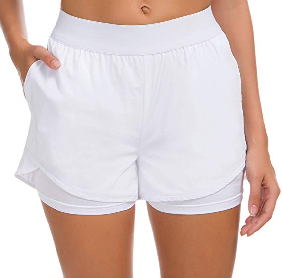 Two side pockets compression shorts can hold your card ,keys or mobile phone. Elastic waistband giving you maximum comfort,perfect workout running shorts. Double layer athletic shorts to anti-exposure and protect your skin.