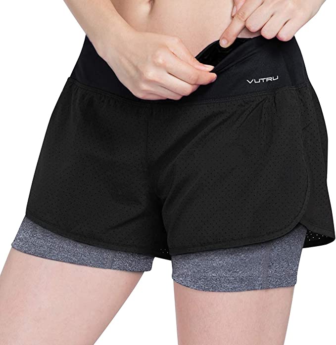 VUTRU Women’s 2 in 1 Running Shorts Quick Dry Workout Athletic Shorts with Liner Back Pockets
