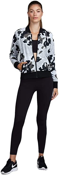 An essential Spring workout piece. This sport mesh bomber is designed for getting you to and from the studio in style.