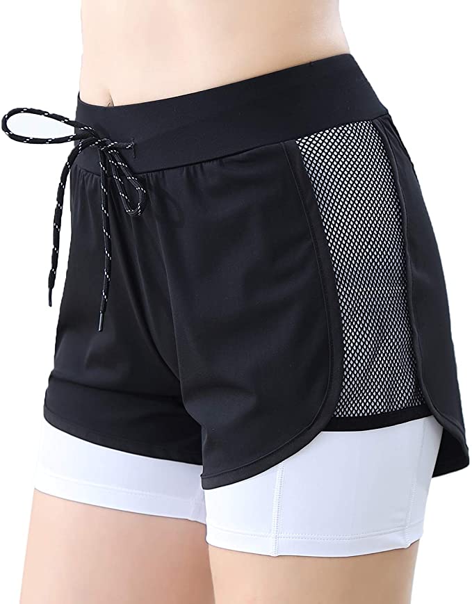 beroy Women’s Activewear Shorts Yoga Workout Pants High Waist Training Running with Two Side Pockets