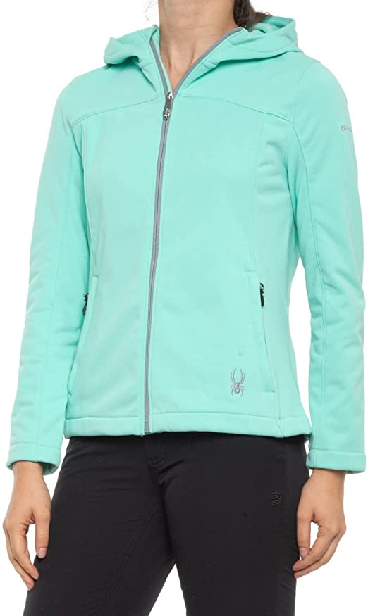 Innovative Ski Wear That Elevates Performance. Built for cold and wet conditions the Spyder Women’s Full Zip Soft Shell Hooded Jacket. This jacket is made with HydroWEB an ultra-thin membrane that delivers superior waterproofing and breathability. Snow and rain are blocked from penetrating the outer shell of the fabric, while a moisture transfer system moves perspiration away from you. Additional features include an embroidered Spyder logo on the front, Spyder logo on left sleeve, zipper pockets, fleece Lining and full zip closure. Women’s sizing.