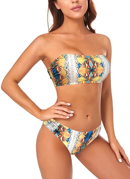 SHEKINI Women’s Bathing Suit Lace Up Bandeau Bikini High Waist Two Piece Swimsuit