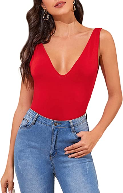 Verdusa Women’s Casual Double V Neck Slim Fitted Basic Tank Top