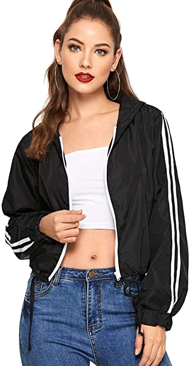 Romwe Women’s Casual Long Sleeve Zip Up Lightweight Outwear Bomber Hooded Jacket