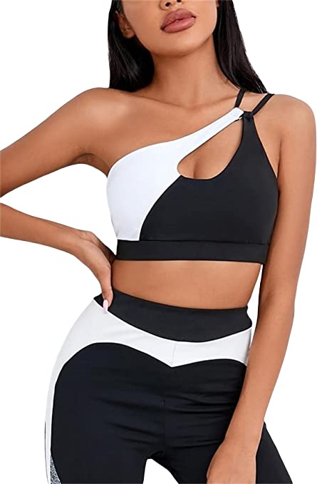 Verdusa Women’s Colorblock Cut Out One Shoulder Sports Bra Workout Tank Top