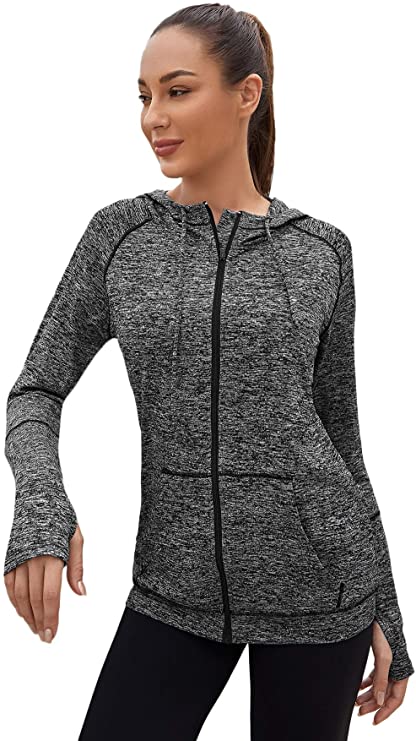 SHEIN Women’s Colorblock Zip Up Hooded Sports Track Jacket With Thumb Holes