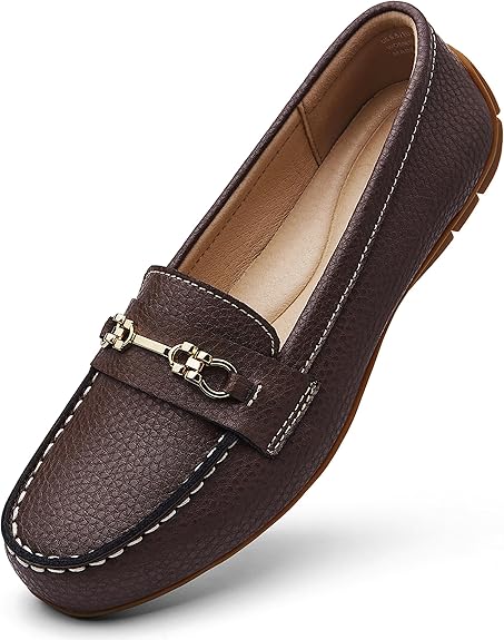 - 【Wow, so comfortable】: This shoe has a lovely pebbled genuine leather upper and is constructed nicely. The soft & supple real leather will stretch to fit your feet like gloves. The bottom thick rubber soles make them durable and provide good traction grooves that will keep from slipping, which makes you feel safe and secure with every step. The removable memory foam insoles have gentle arch support and are lightly cushioned with extra padding under the heal.