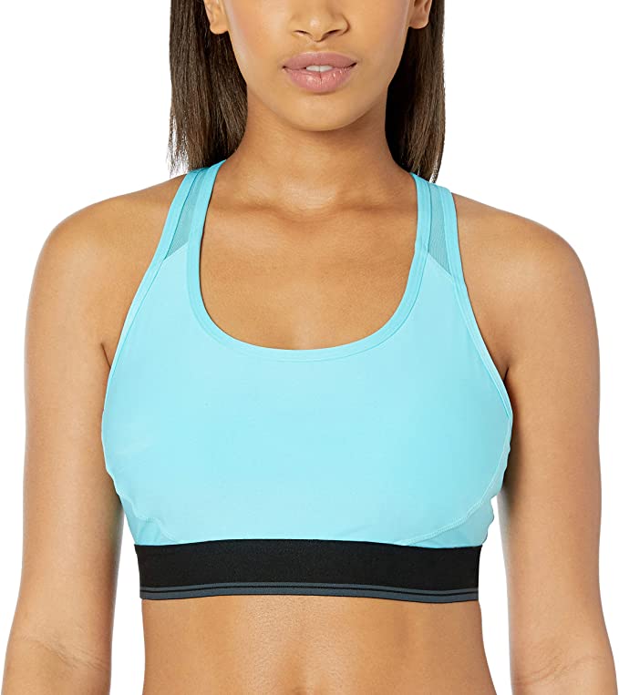 An Amazon brand – Train in confidence in this control tech racer back bra with power mesh back panel for added breathability and featuring flat-lock seams, moisture-wicking fabric, and reflective logo.