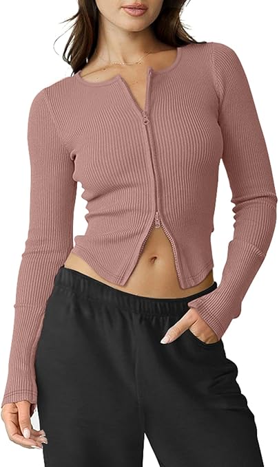 - Features: Double zip up, sexy fitted, ribbed knit, crop jacket, long sleeve workout tops, athletic running jacket, yoga tops, cardigan for women. Skinny, working out, hot girl in the gym.