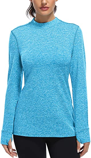 Fulbelle Women’s Fleece Thermal Tops Long Sleeve Mock Neck Running Shirts with Thumbhole